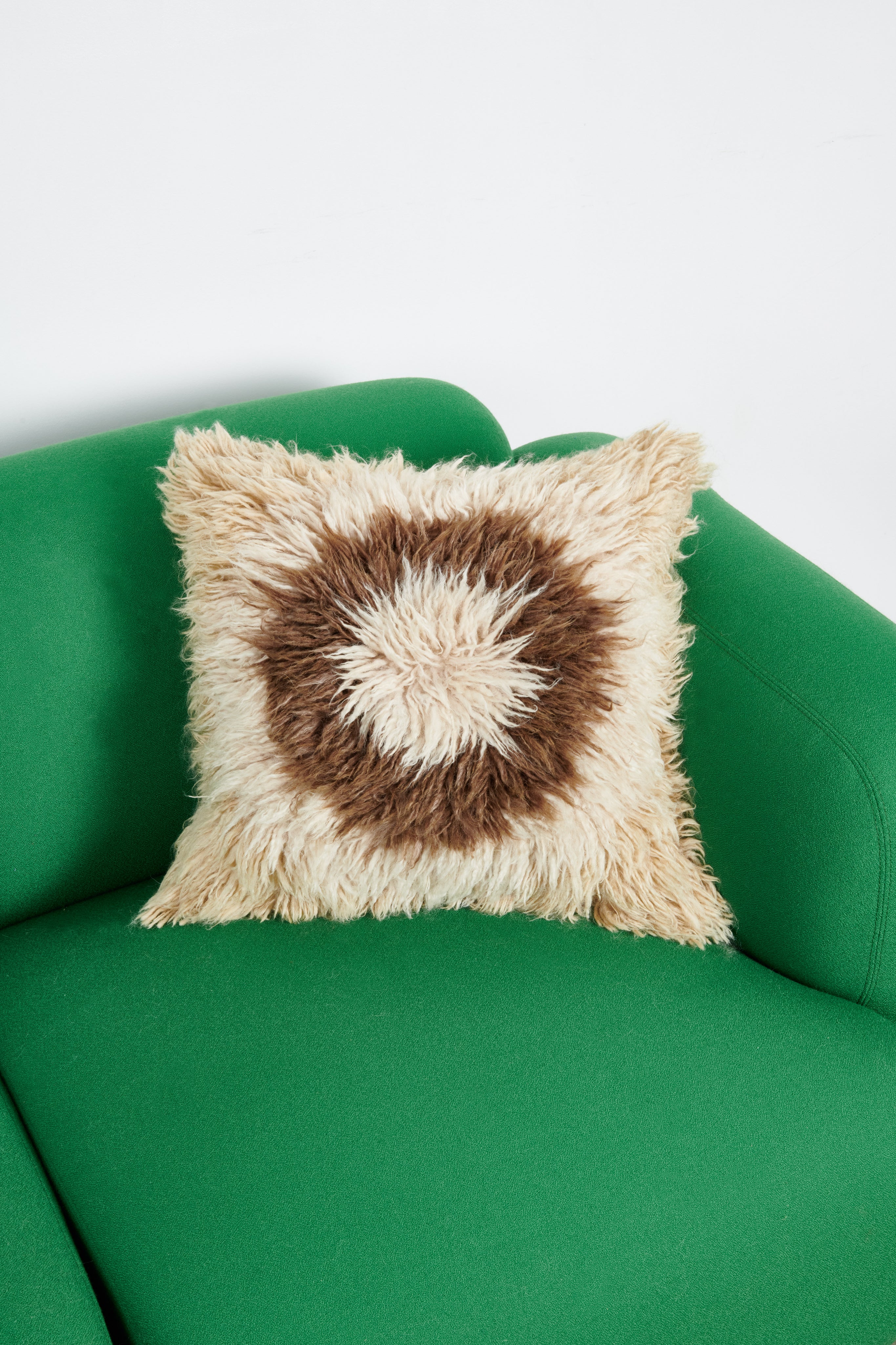The Dandi Pillow is a sensory exploration of texture and light, inspired by the ethereal effects of gazing at the sun for too long. Its design features soft, concentric circles that subtly distort and blur, mimicking the afterimage of light. Handwoven from alpaca wool, the pillow offers an unparalleled softness and warmth, elevating its tactile experience.