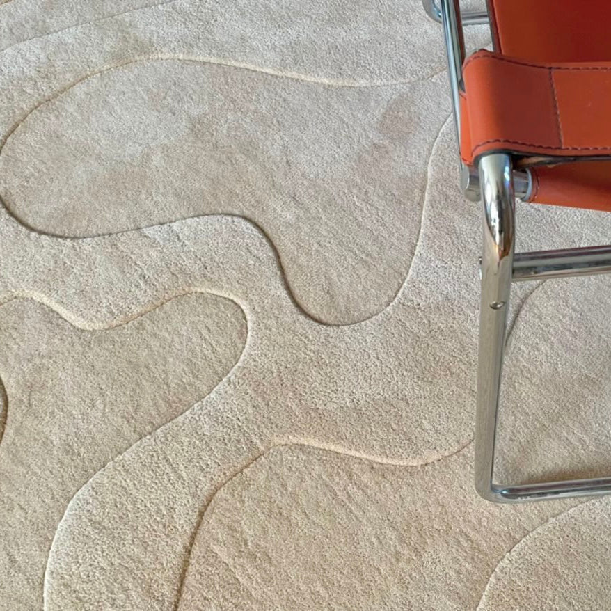 The Oops Rug reimagines the traditional rectangular rug form, but with an embossed surface that seems to flow as if a liquid has splashed across it. The elevated shape creates an illusionary spill, frozen mid-motion, bringing a sense of fluidity to any space.