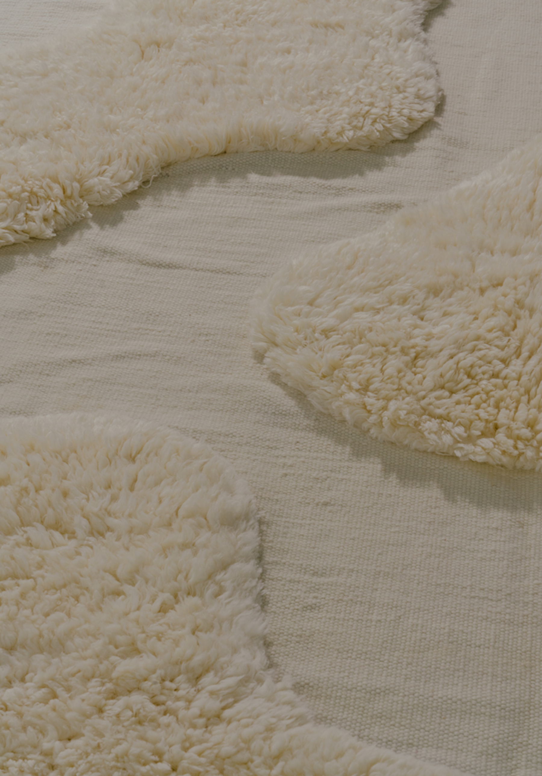 A rectangular area rug with organically shaped islands of shag that fall over and into our hand woven rug.